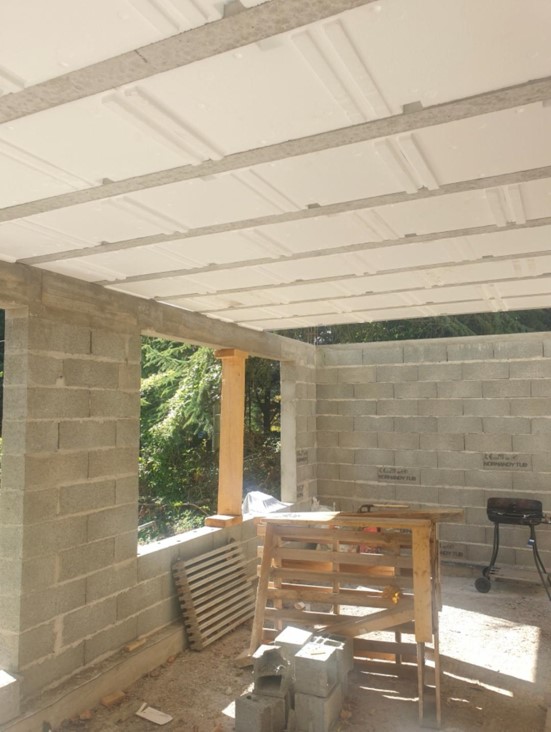 Fondations et le dallage, cloisonnement, faux plafonds.